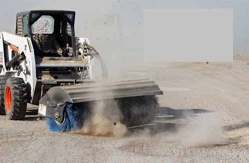 The sole function of a sweeper attachment is to clean up pavement. The options generally are two - a forward sweeping power broom attachment which does not collect the dirt but just blows it forward (see picture below), which for most applications is not the best, and a sweeper attachment which does collect all the dirt into the bucket for dumping (highlighted in video), which we do recommend.