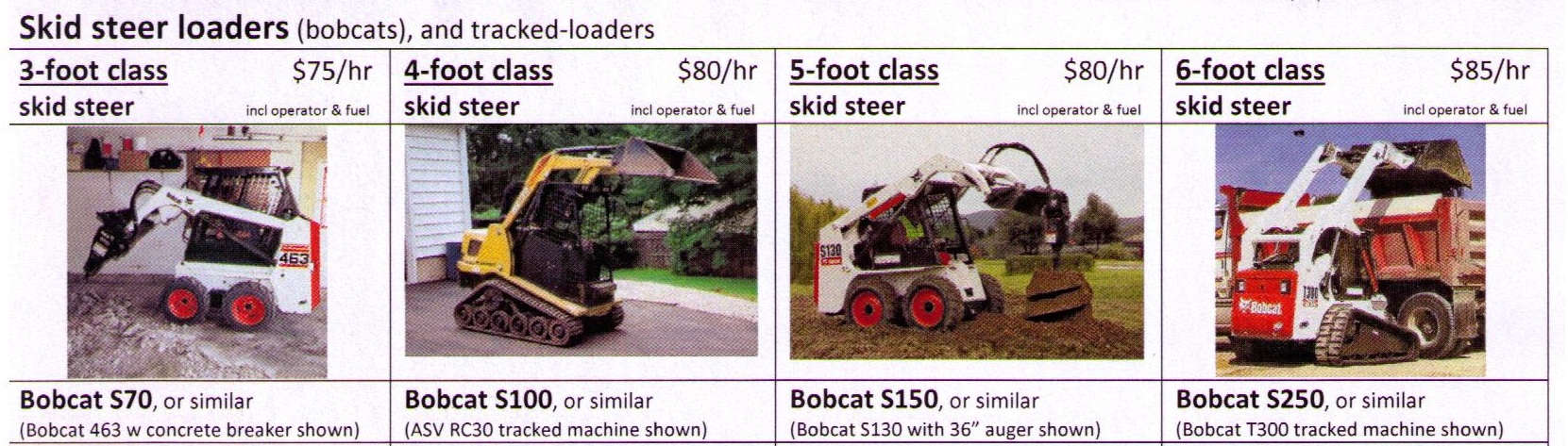 All prices include machine, operator & fuel
